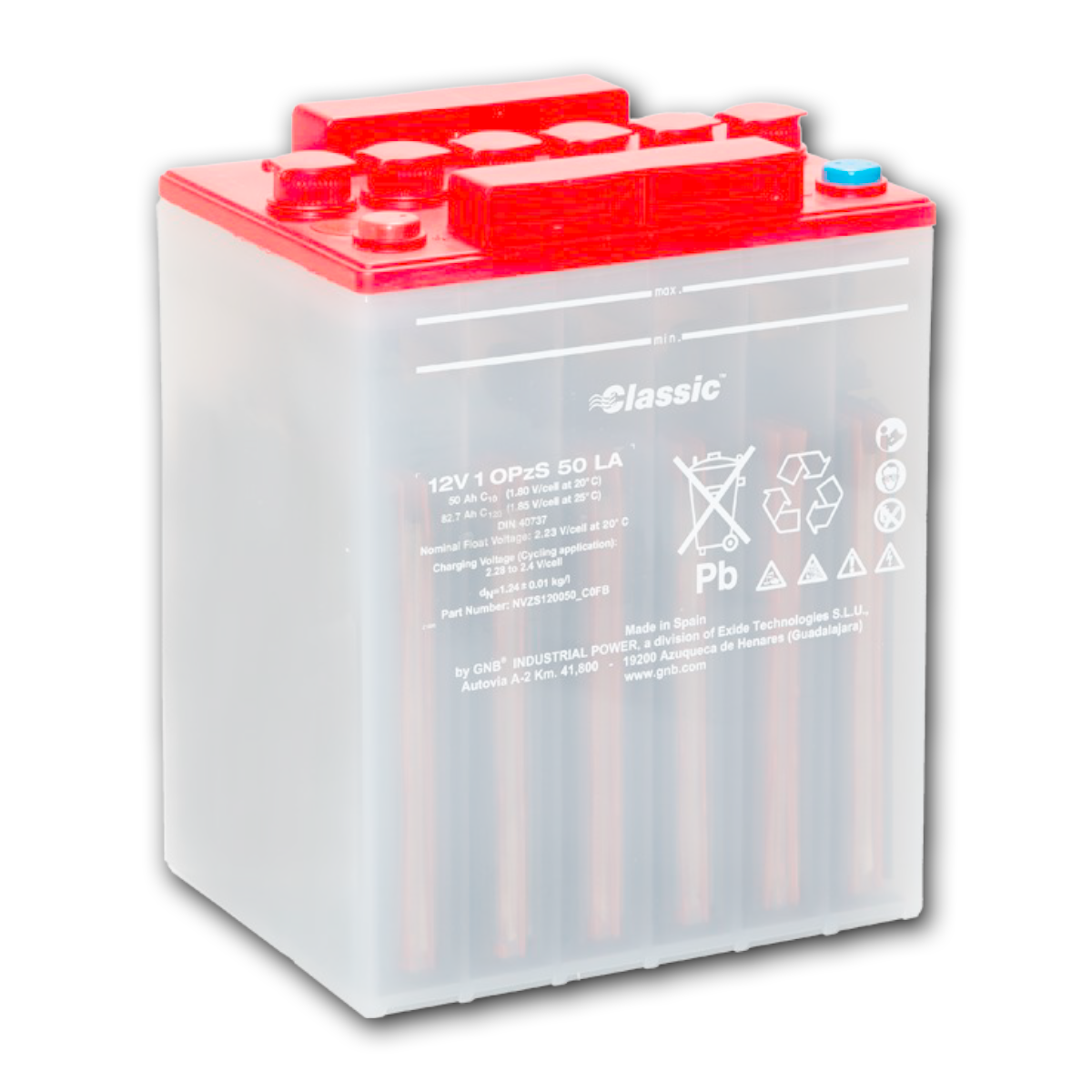 Los acumuladores Classic OPzS 12V 1  OPzS 50 LA de Exide se caracterizan por su alta calidad y su alta fiabilidad operativa en condiciones de operación complicadas o exigentes y su bajo grado de mantenimiento debido a la gran densidad de su electrolito sustentada en su aleación única.