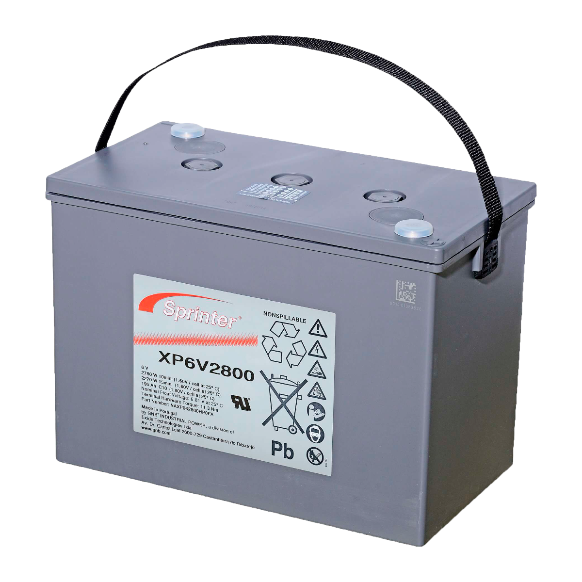 Las baterías de la gama Sprinter® P/XP Series de Exide se caracterizan por su alta fiabilidad operativa en condiciones de operación extremas y su bajo mantenimiento debido a la gran densidad de su electrolito sustentada en su aleación única. Se presenta en formato de envase con elementos internos de 2V que conectados en serie obtenemos el voltaje de 6V o 12V a petición de la aplicación y/o conectadas en serie varias baterías para obtener otras tensiones como 48V, 125, etc, … . Este producto corresponde a un envase monoblock de 6V de la batería Sprinter XP6V2800.